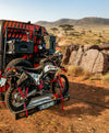 Mototrans MoverBack is a uniquely engineered motorcycle carrier equipped with a rearward-sliding, extendable mechanism. Its standout feature is the ability to slide backward even while the motorcycle is loaded, allowing users to easily access rear doors and storage compartments of their camper or motorhome without unloading.